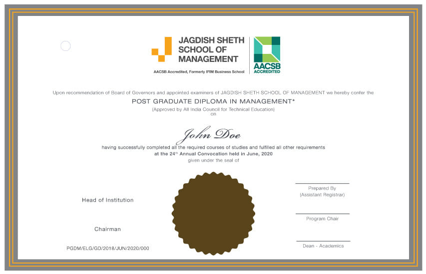 Receive an AICTE-recognized and AACSB-accredited PGDM certificate from JAGSOM